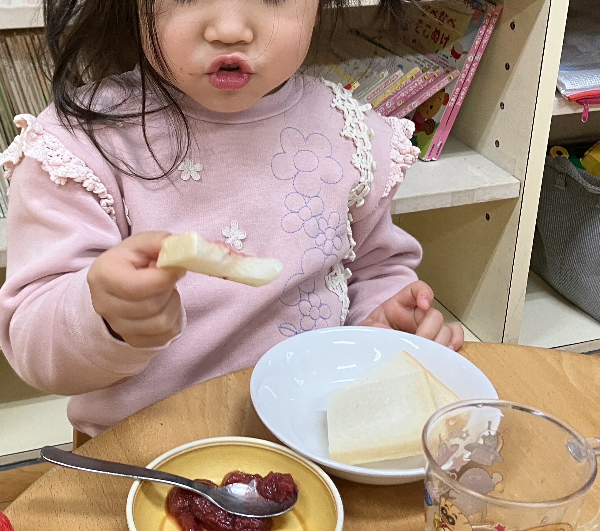 今日のおやつは手作りいちごジャムのサンドイッチ!