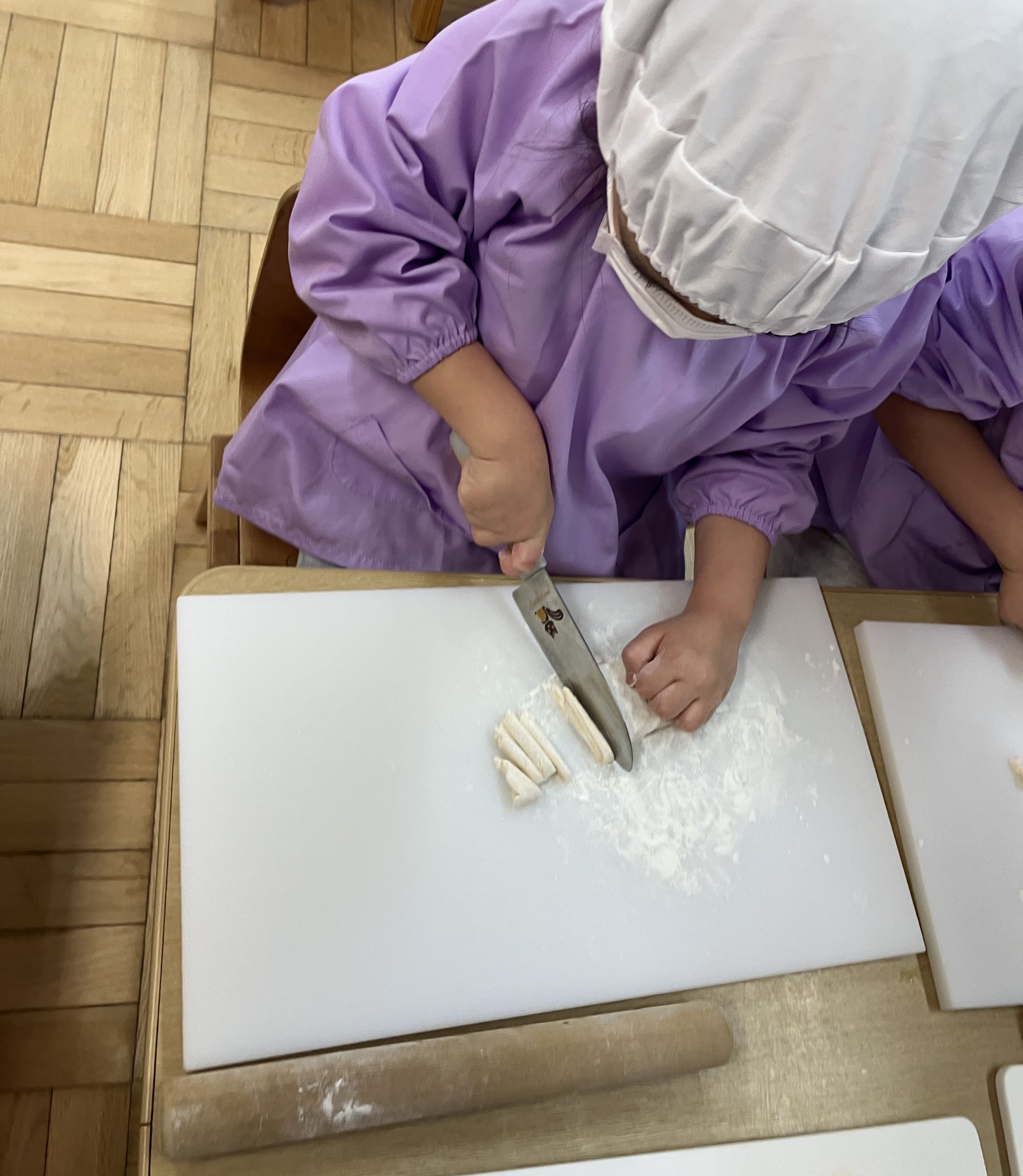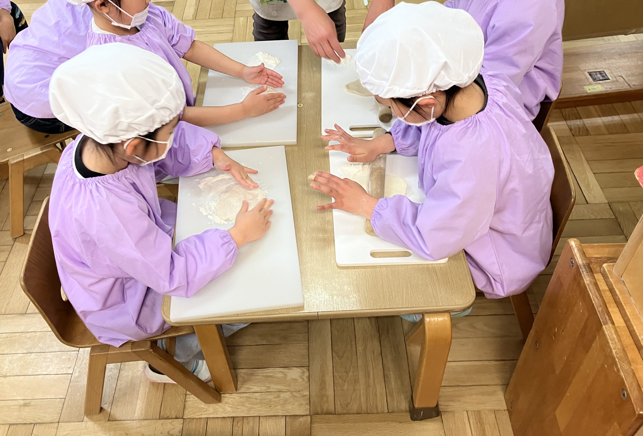 すいか組さん(5歳児クラス)最後の食育は【うどんを作ろう】です。