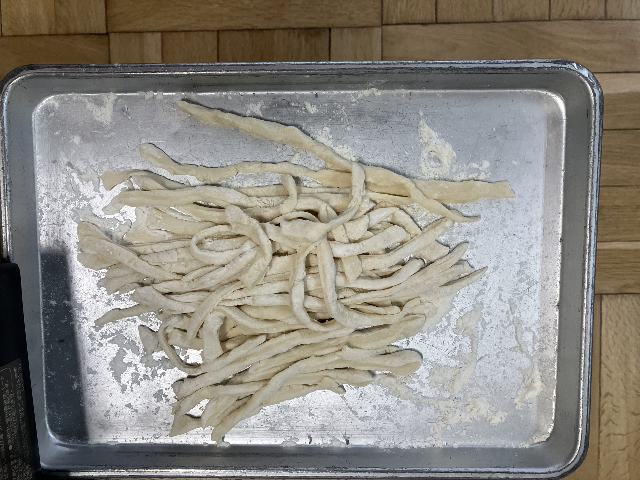 (※うどん作りは中力粉を使用しますが、今回は強力粉と薄力粉を同量合わせて代用しました。)