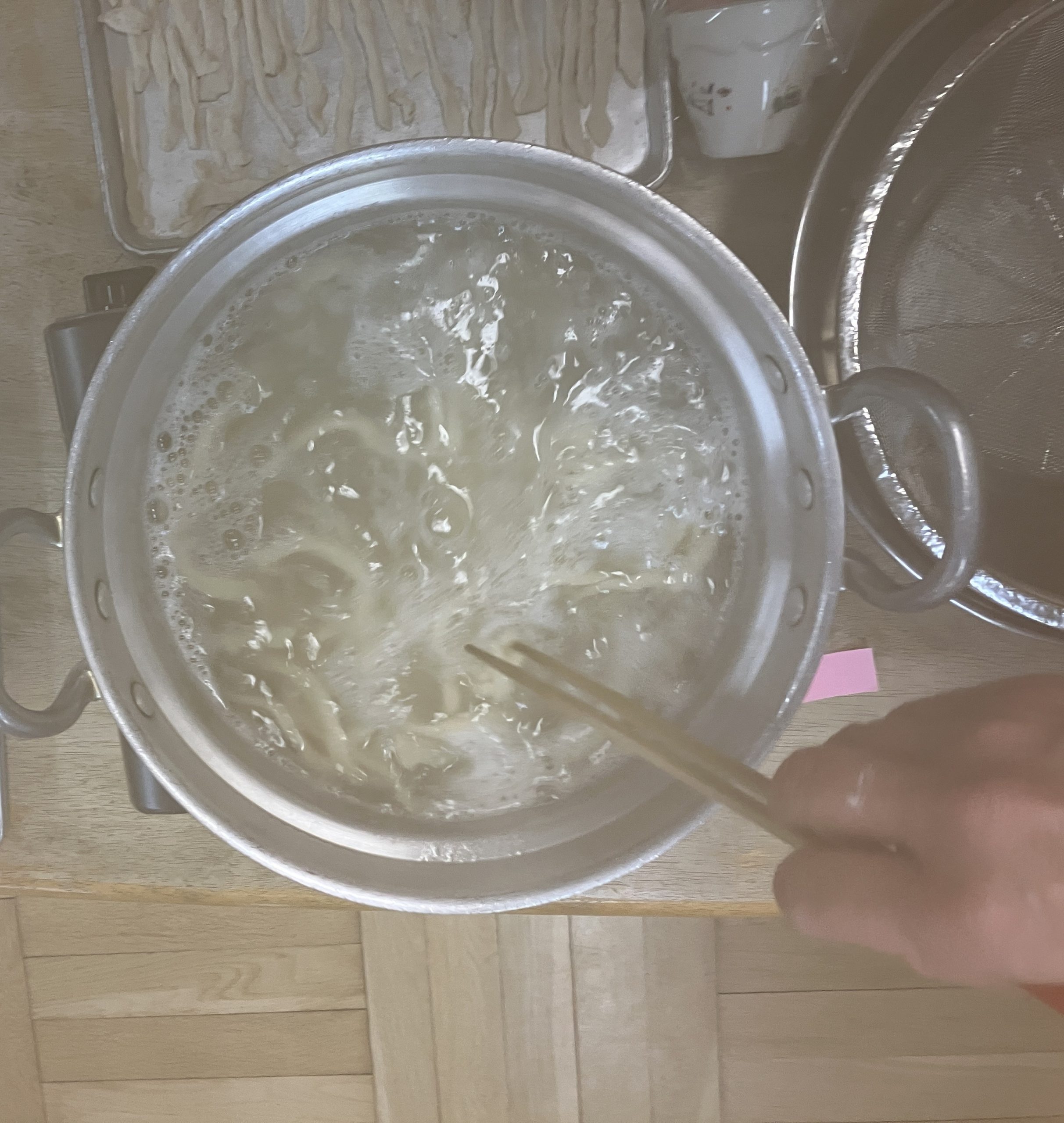 たっぷりのお湯で茹でて…(極太麺は20分ほど茹でました!)