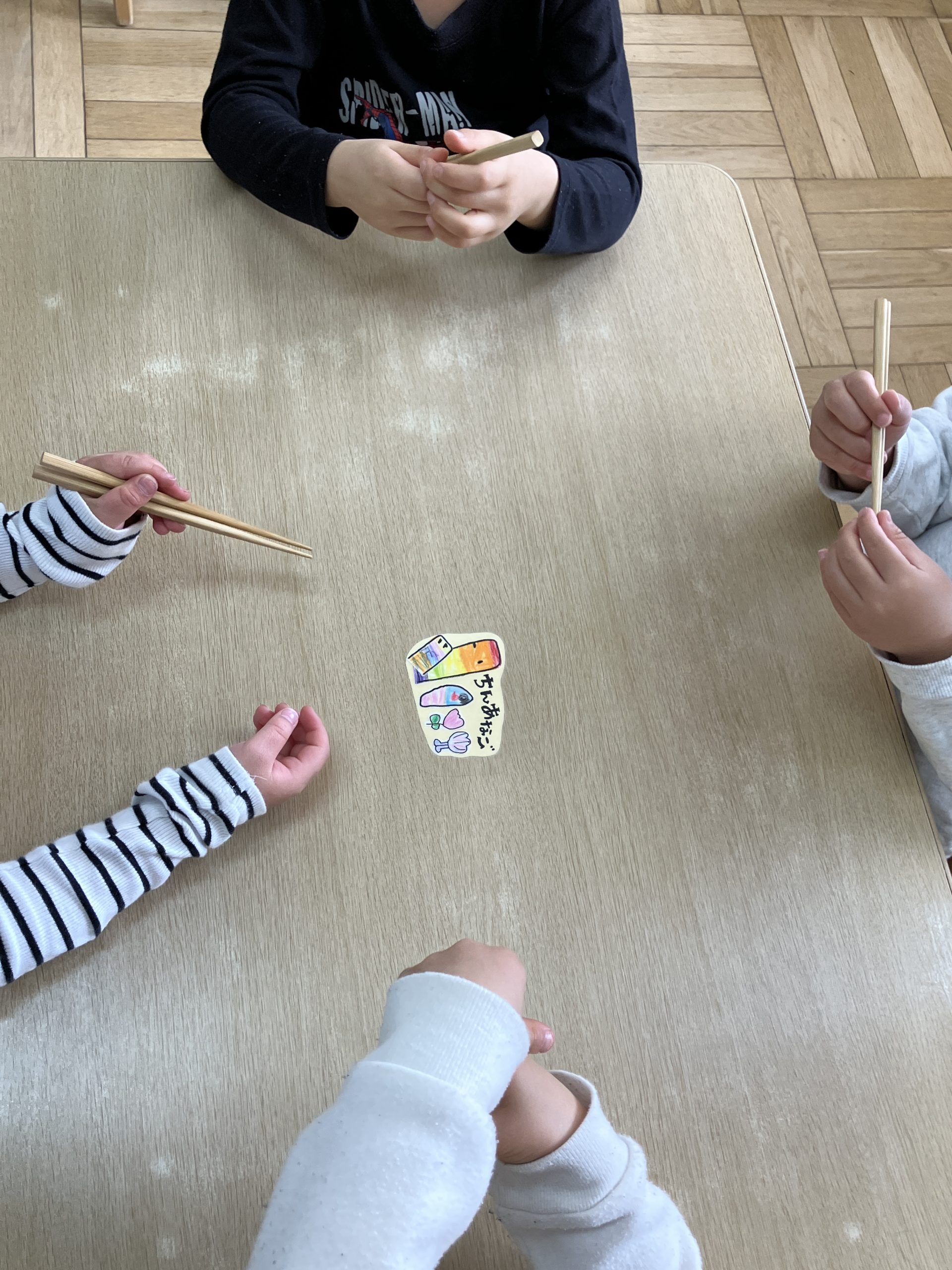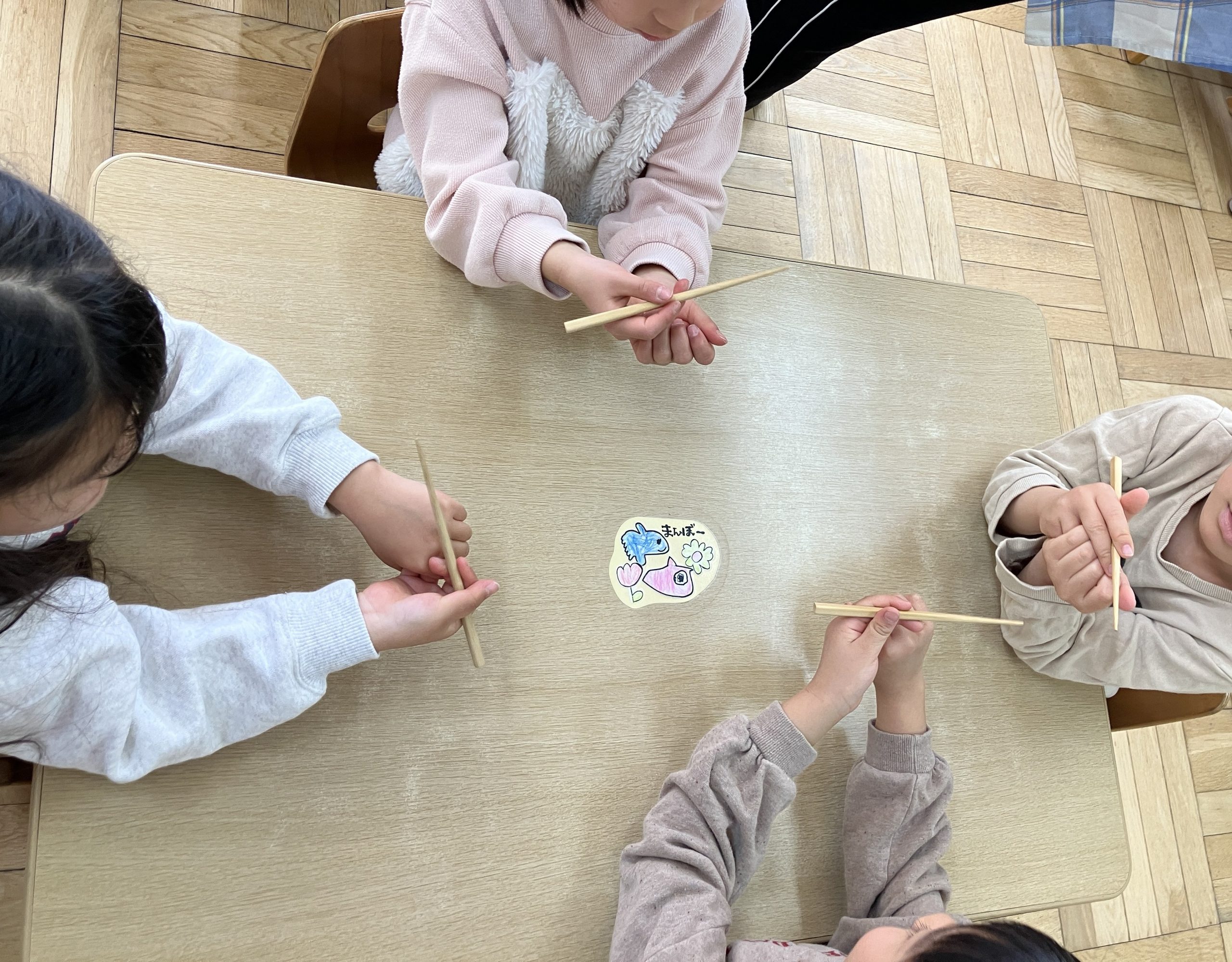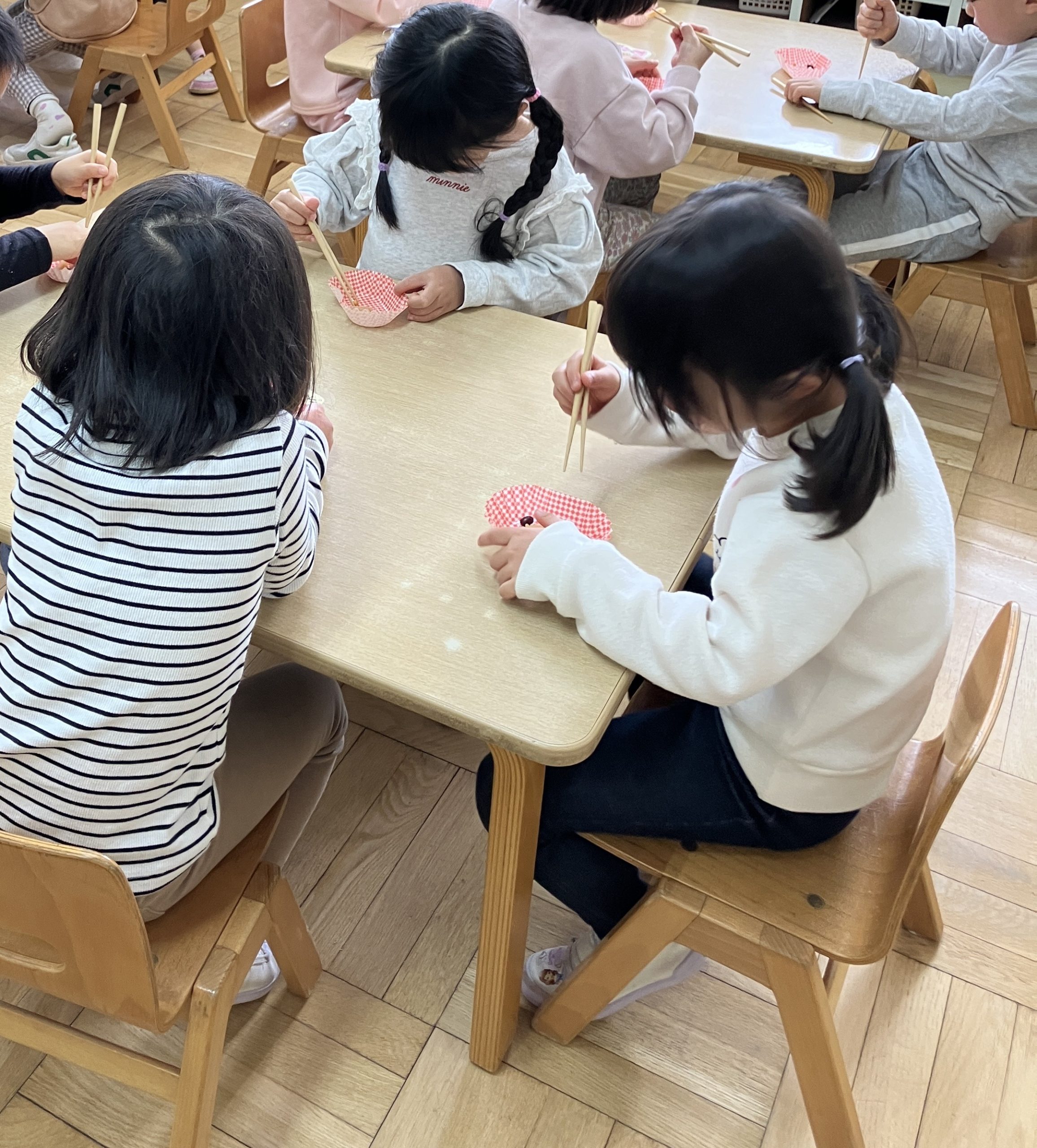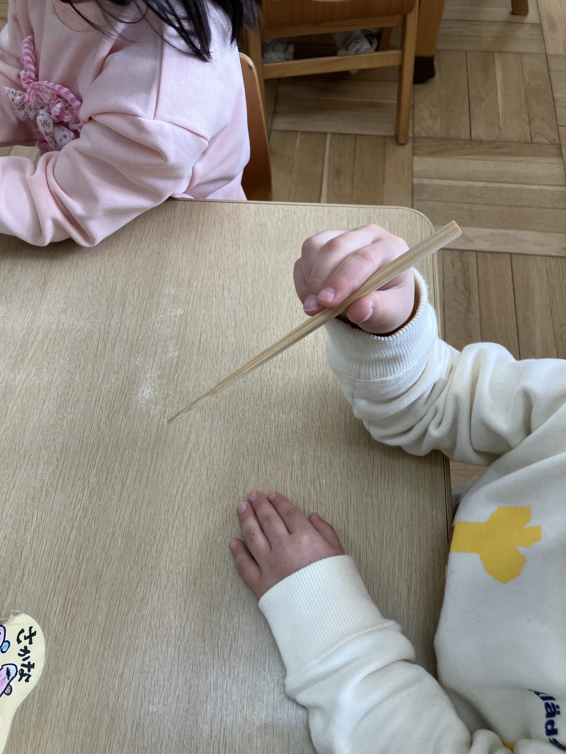 「こうかな…?」みんな頑張ってお箸を上、下、と動かしています。