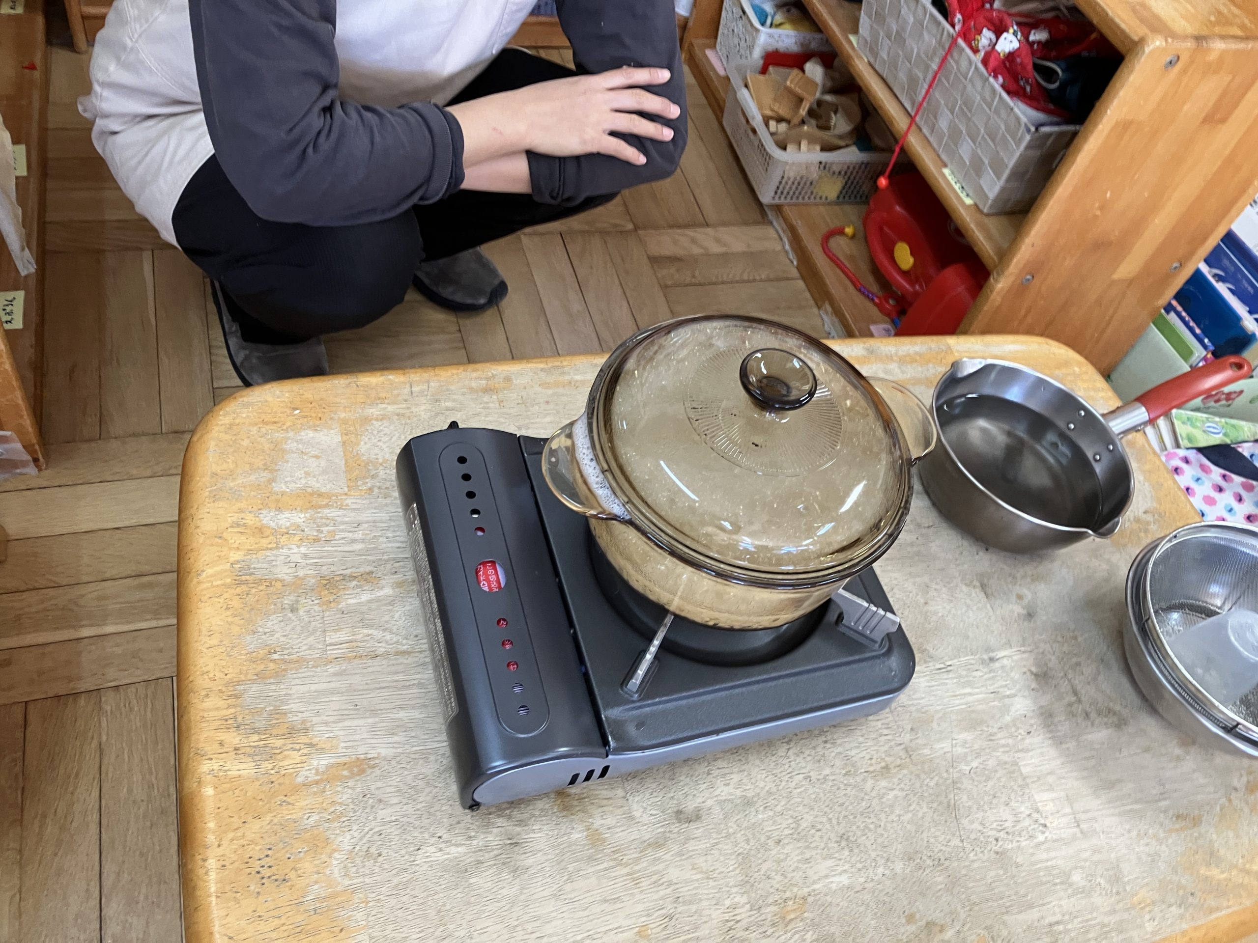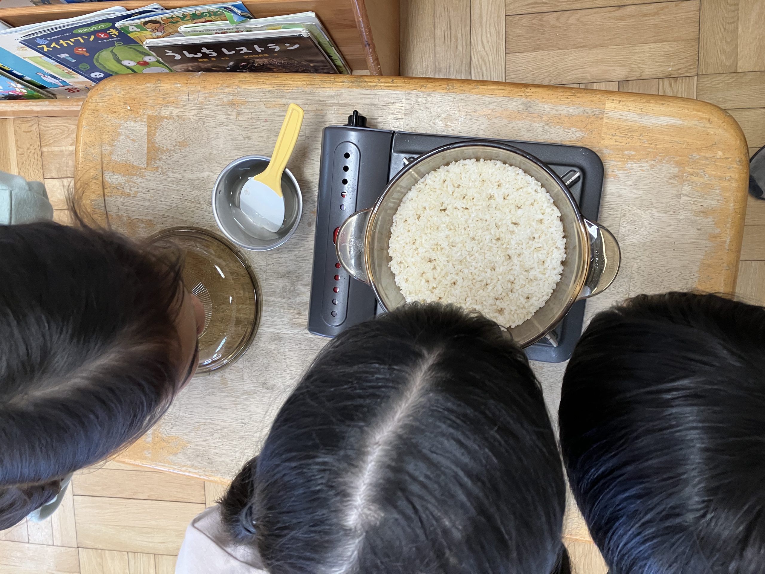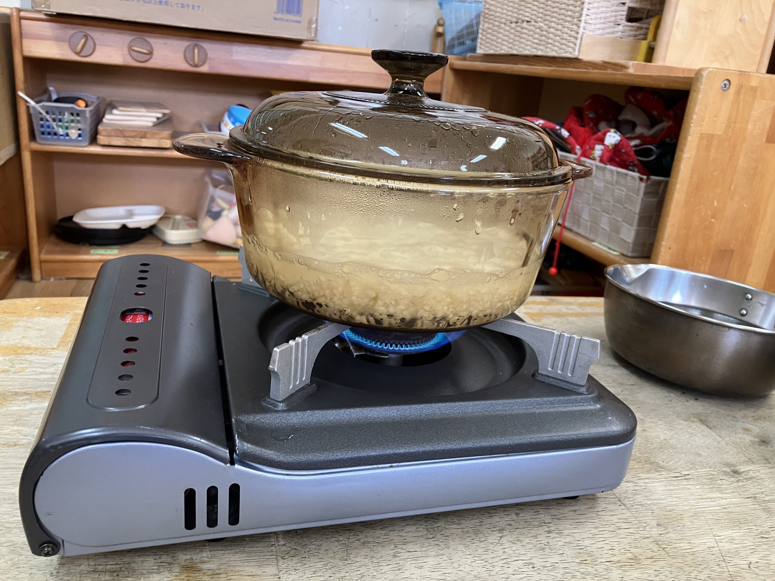 今後、給食がご飯の時はすいかさんのお部屋でご飯を炊く日を設けていきたいと思います。