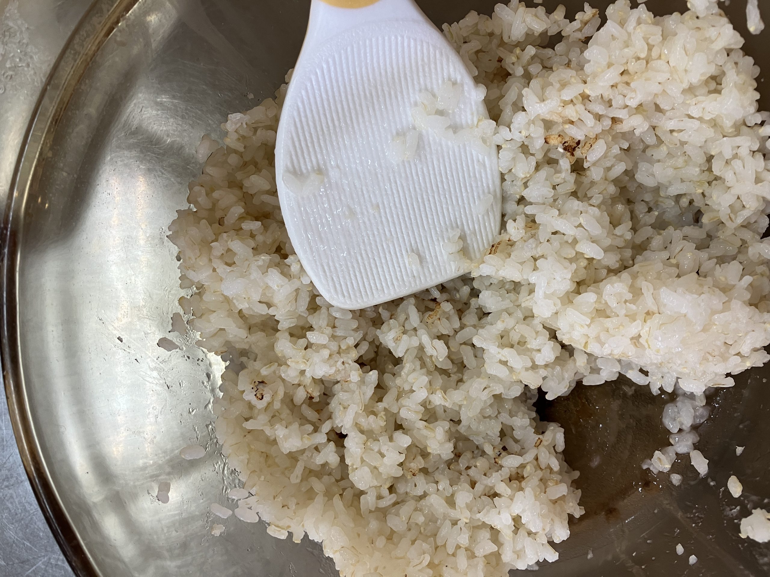 鍋の底にはおこげも出来ていました。炊き立てのご飯は美味しかったようでペロリ!