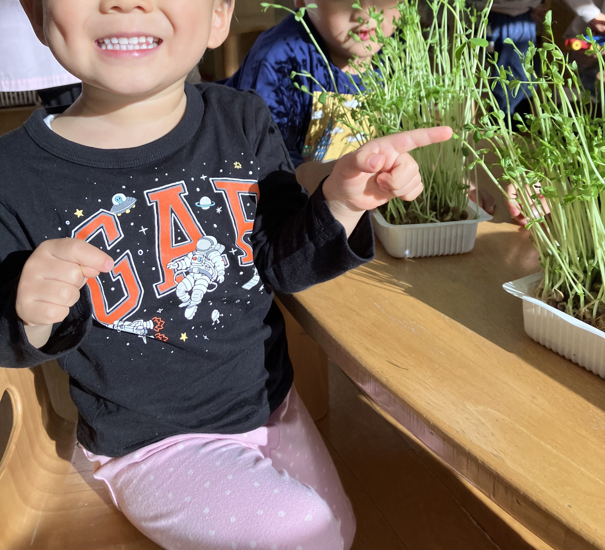 りんご組さん(2歳児クラス)でリボーンベジタブルに挑戦しました。