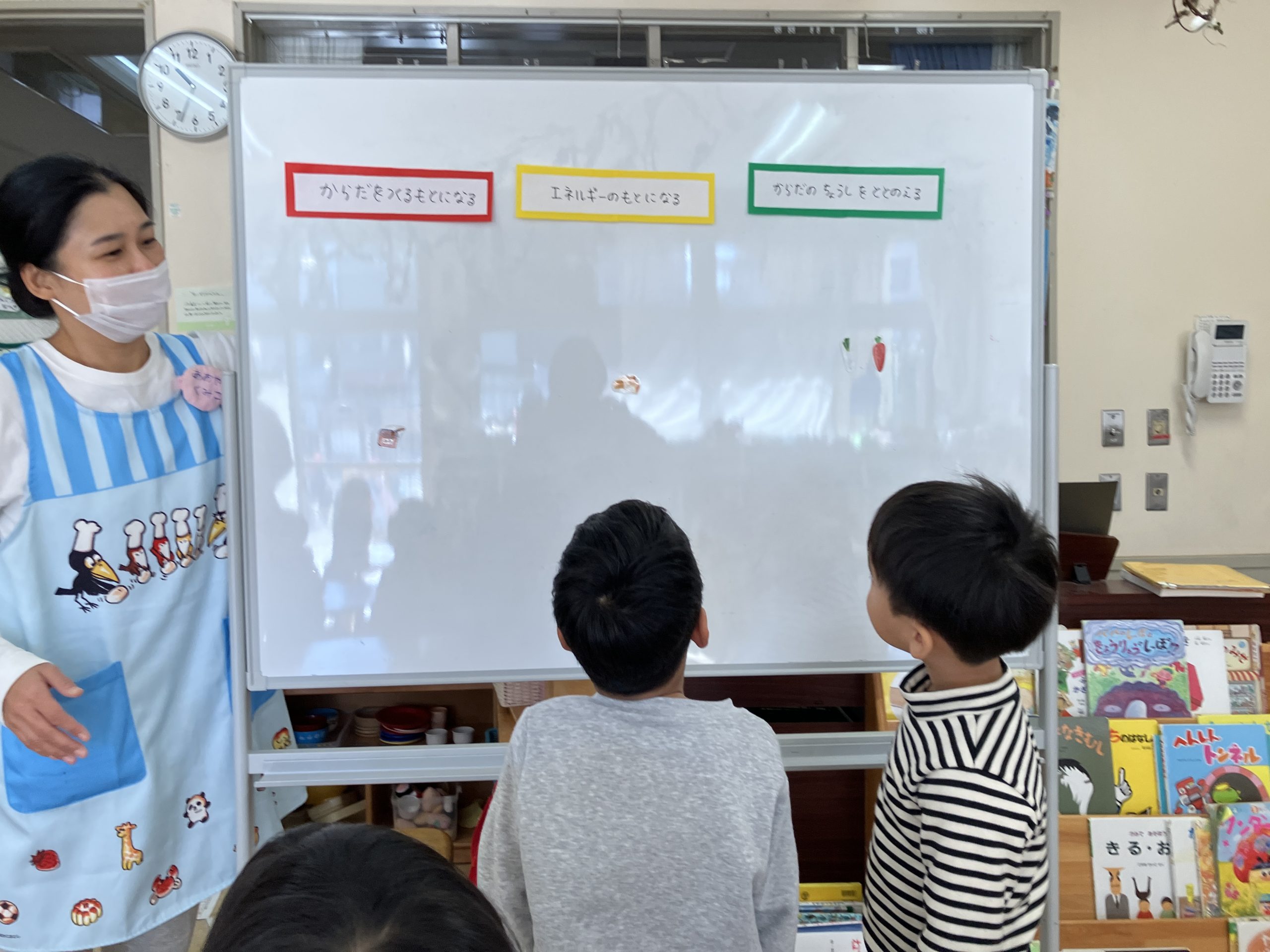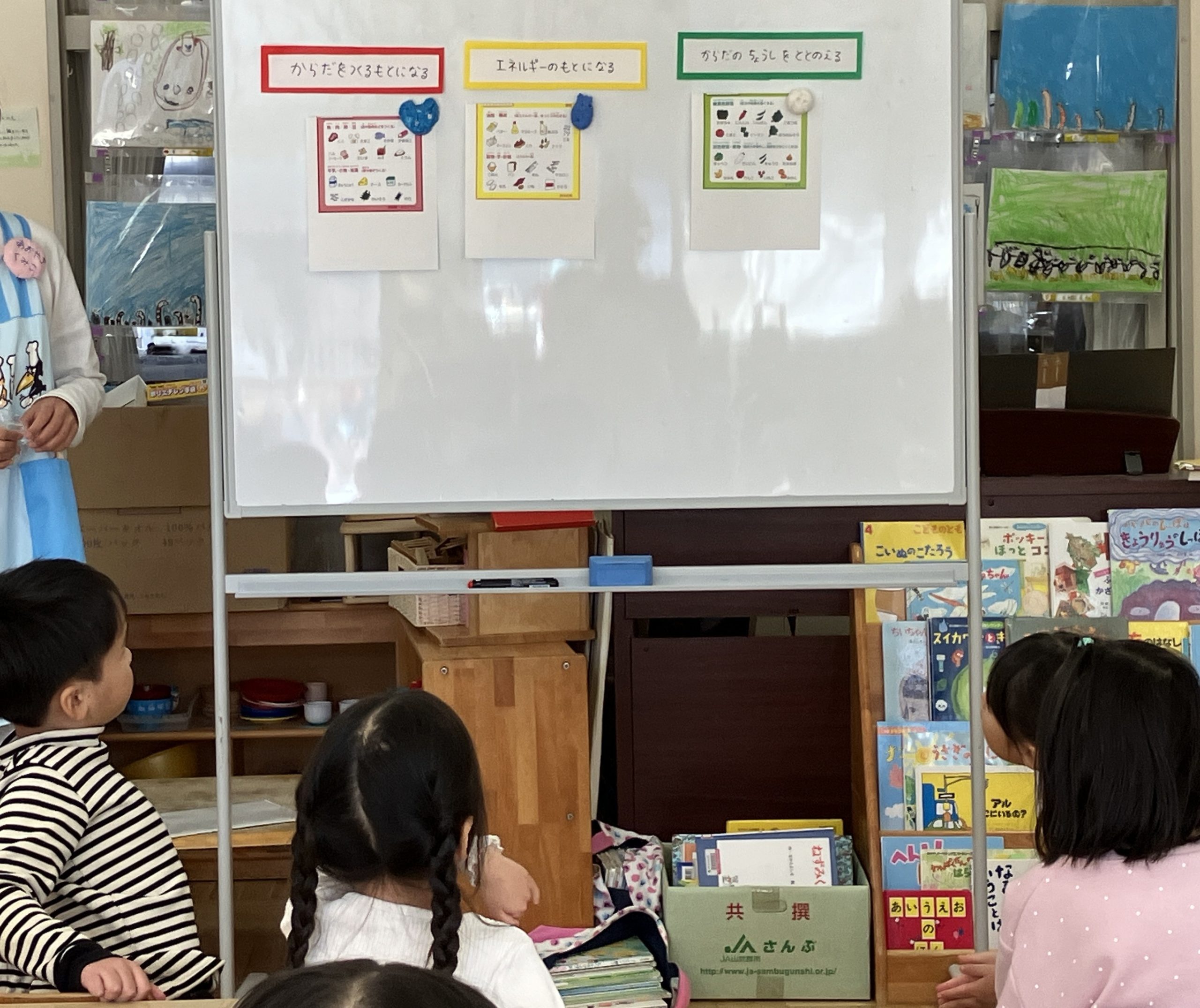 すいか組さん(5歳児クラス)で三色食品群のお話をしました。