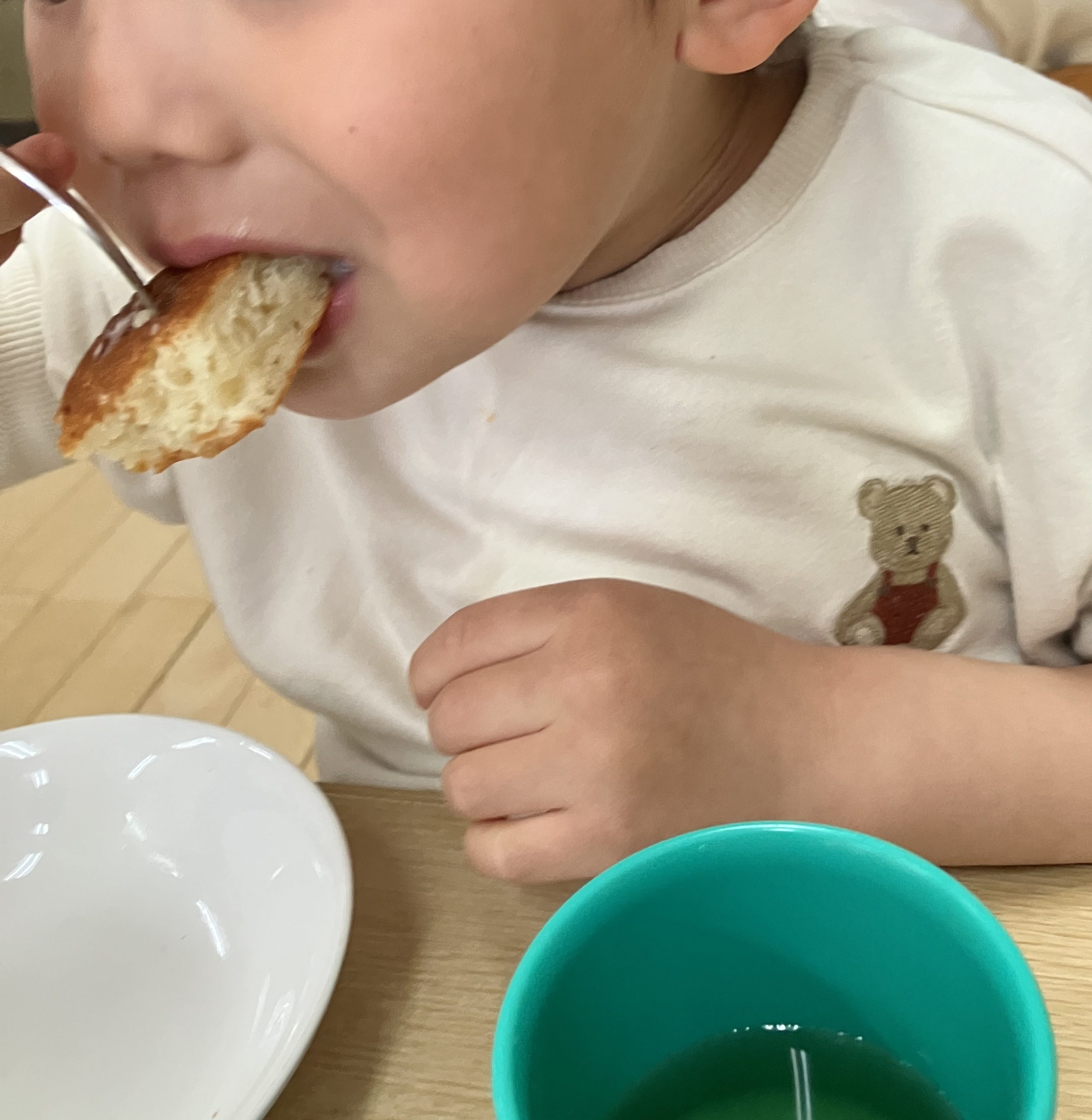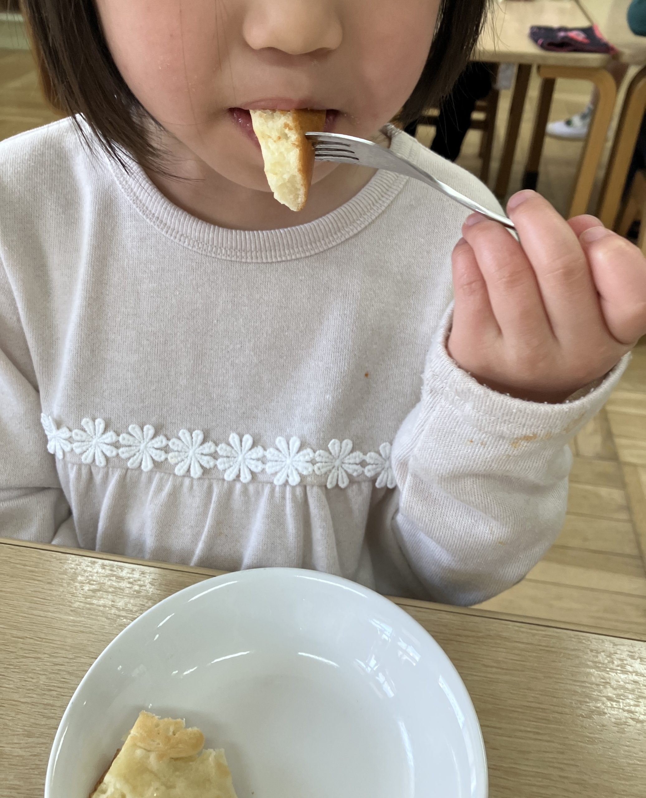 15時のおやつは【オラディ】。ヨーグルト入りのパンケーキです。