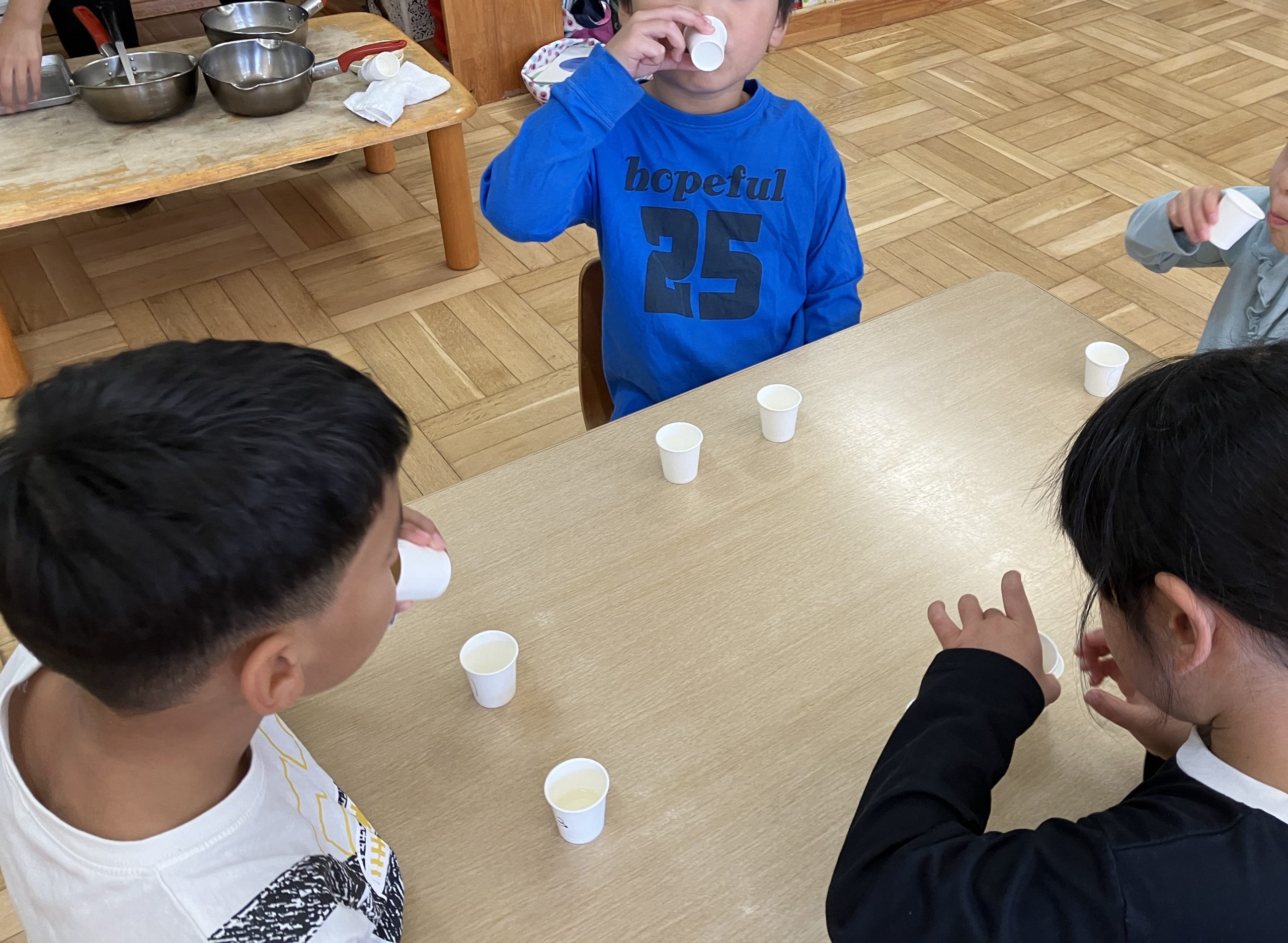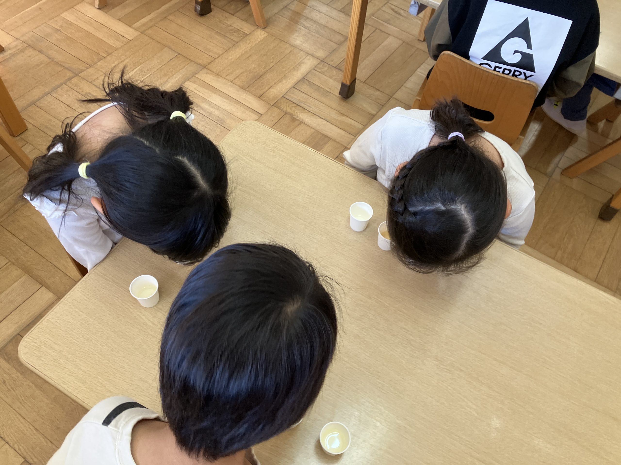 すいかさん(5歳児クラス)で【出汁のお話】と【3種の出汁味くらべ】をしました。