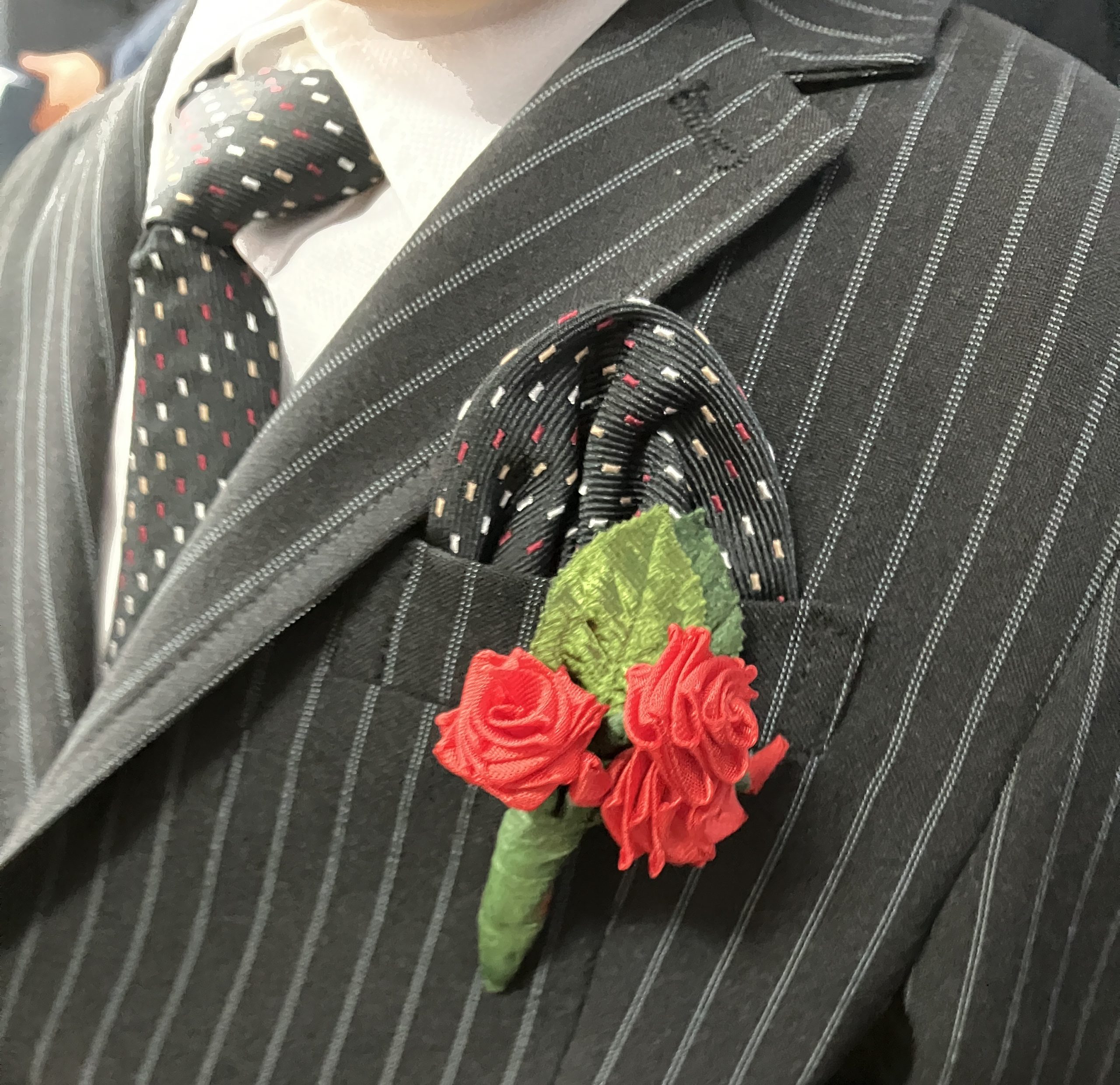 バラのコサージュは職員の手作り。みんなで心を込めて作りました。