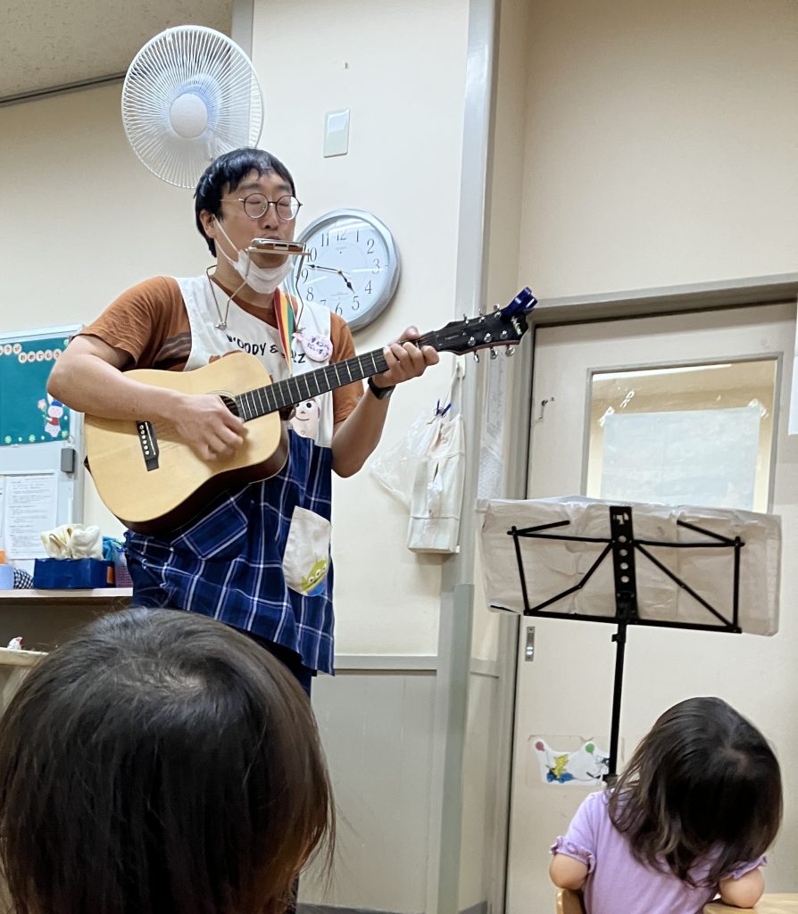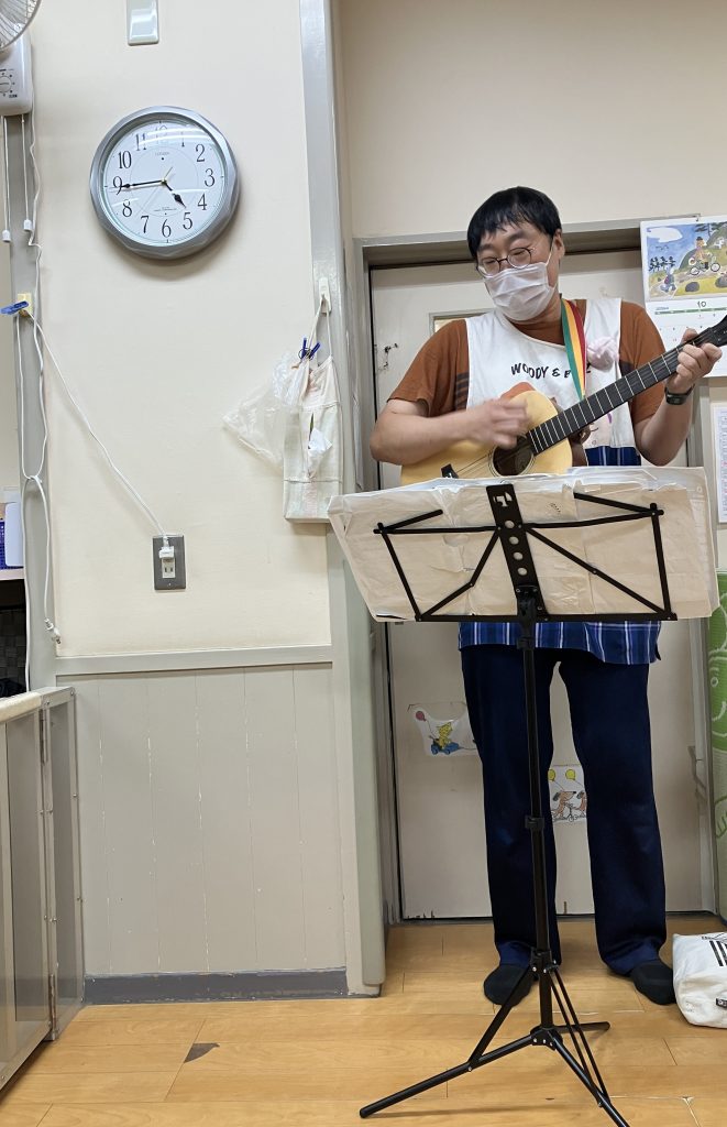 職員のギター演奏に合わせて、マラカスをふりふり♪