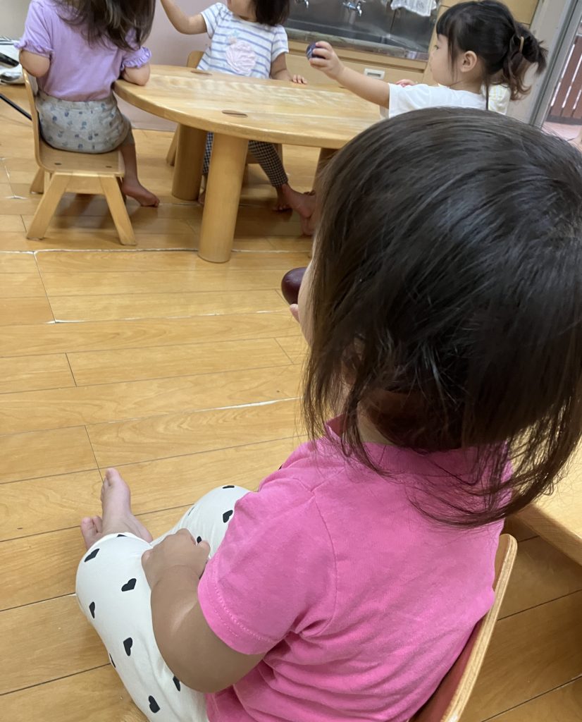 みかん組さん(1歳児クラス)で楽器遊びをしました。