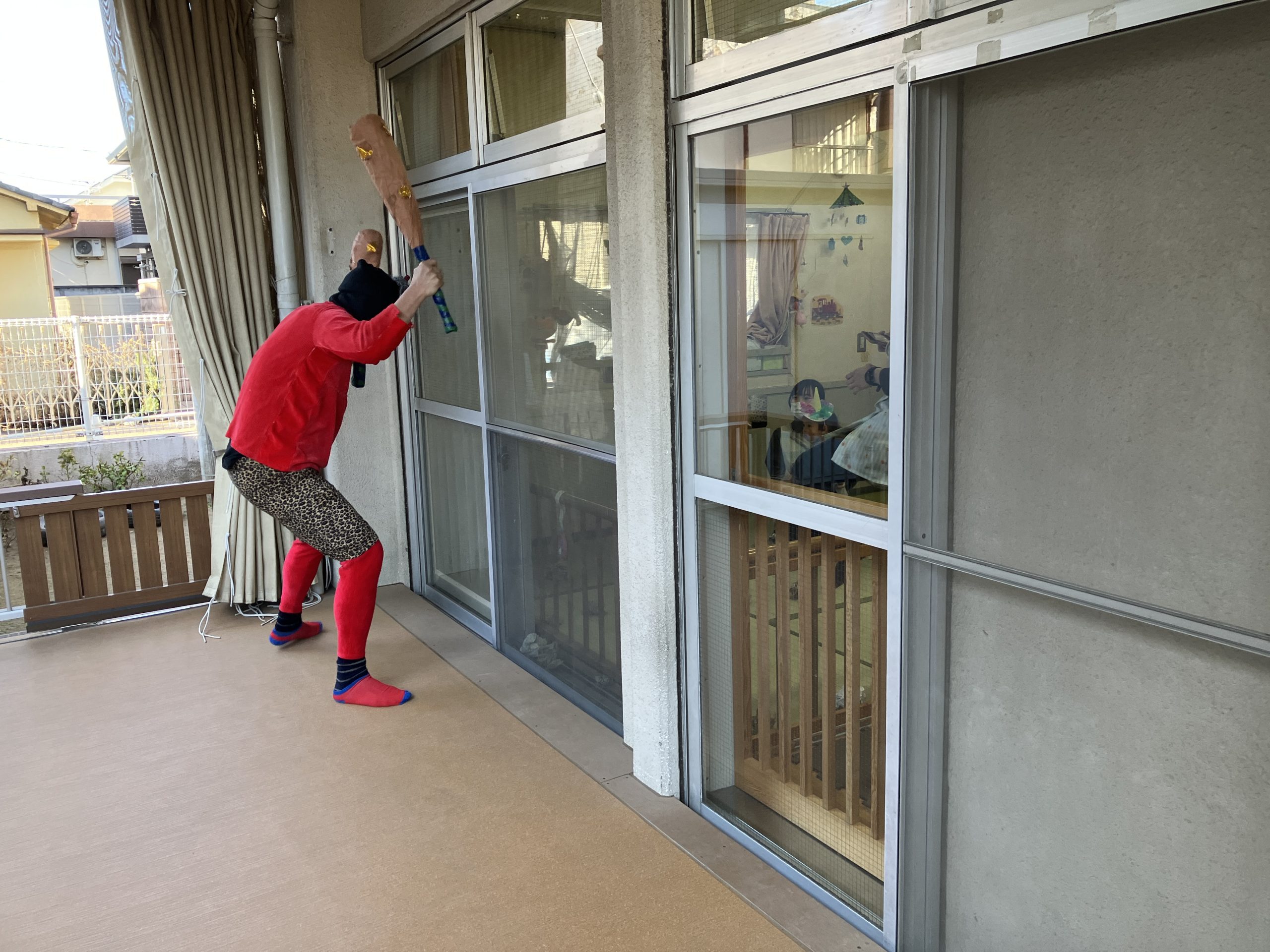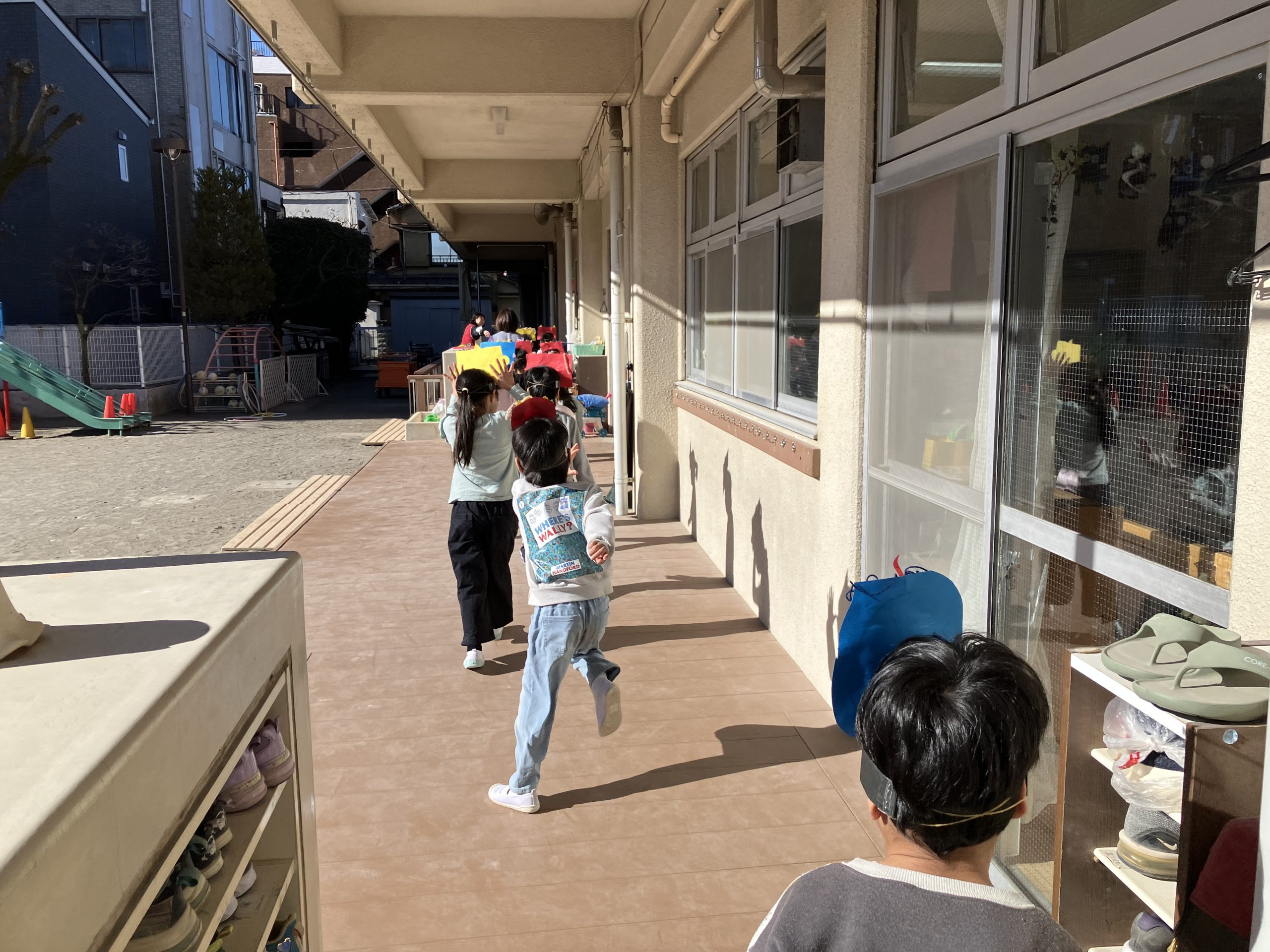 「鬼だぞ~!」っと小さいクラスのお友だちのところへ行きました。