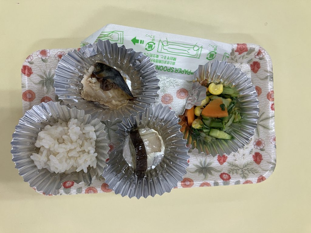 今日のメニューは【ごはん・さばの照り焼き・チンゲン菜のおかか和え・厚揚げとなすの煮物】です。