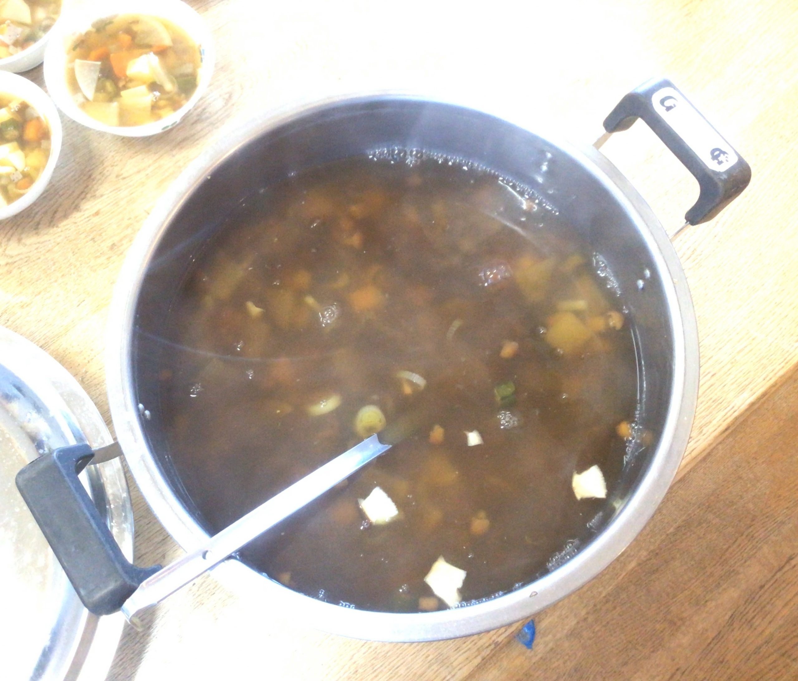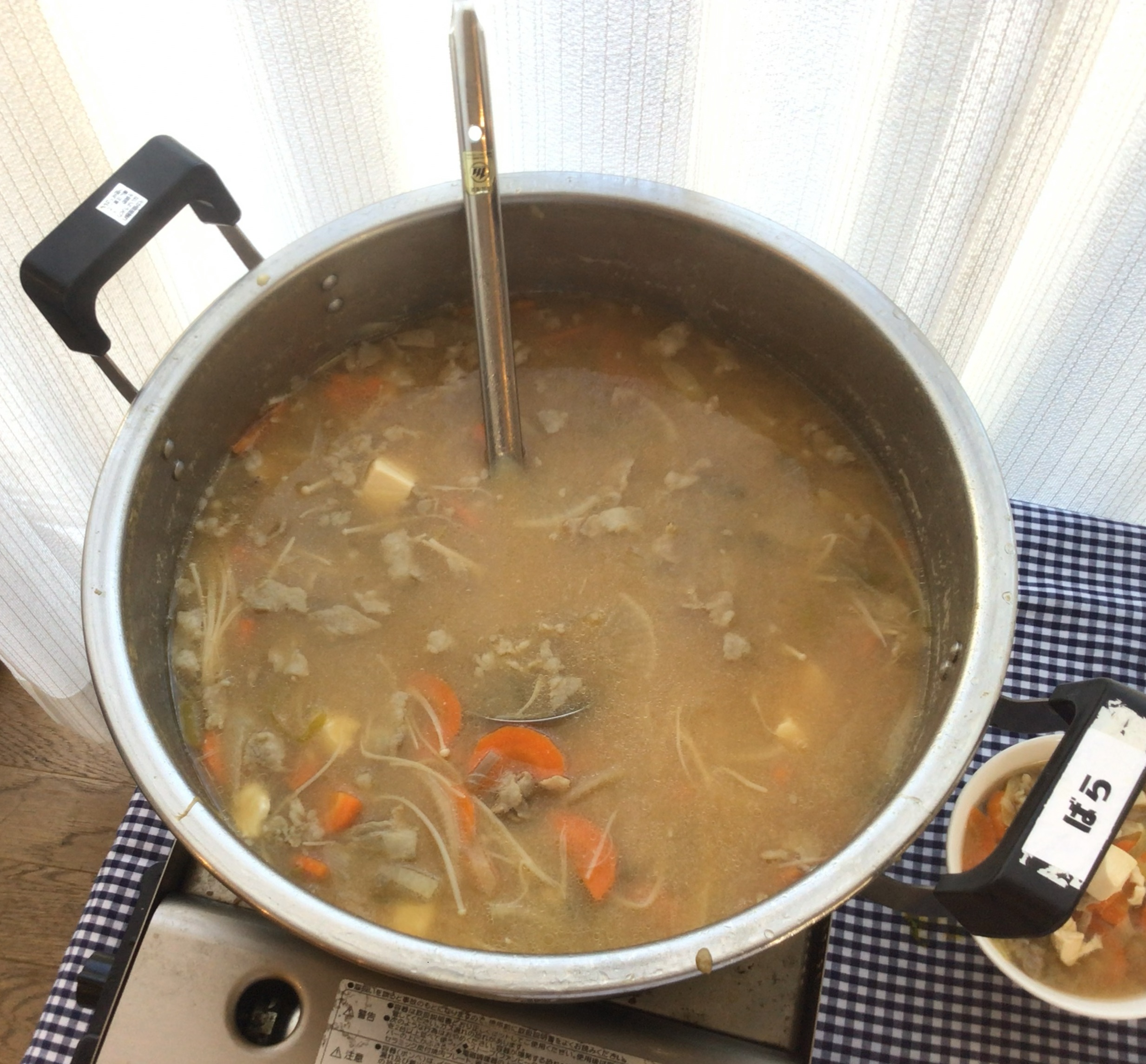 各クラスで作った「豚汁」「ポトフ」「のっぺい汁」と給食の「具だくさん味噌汁」の4種類の汁物の飲み比べを行い色々な味を感じることが出来ました。
