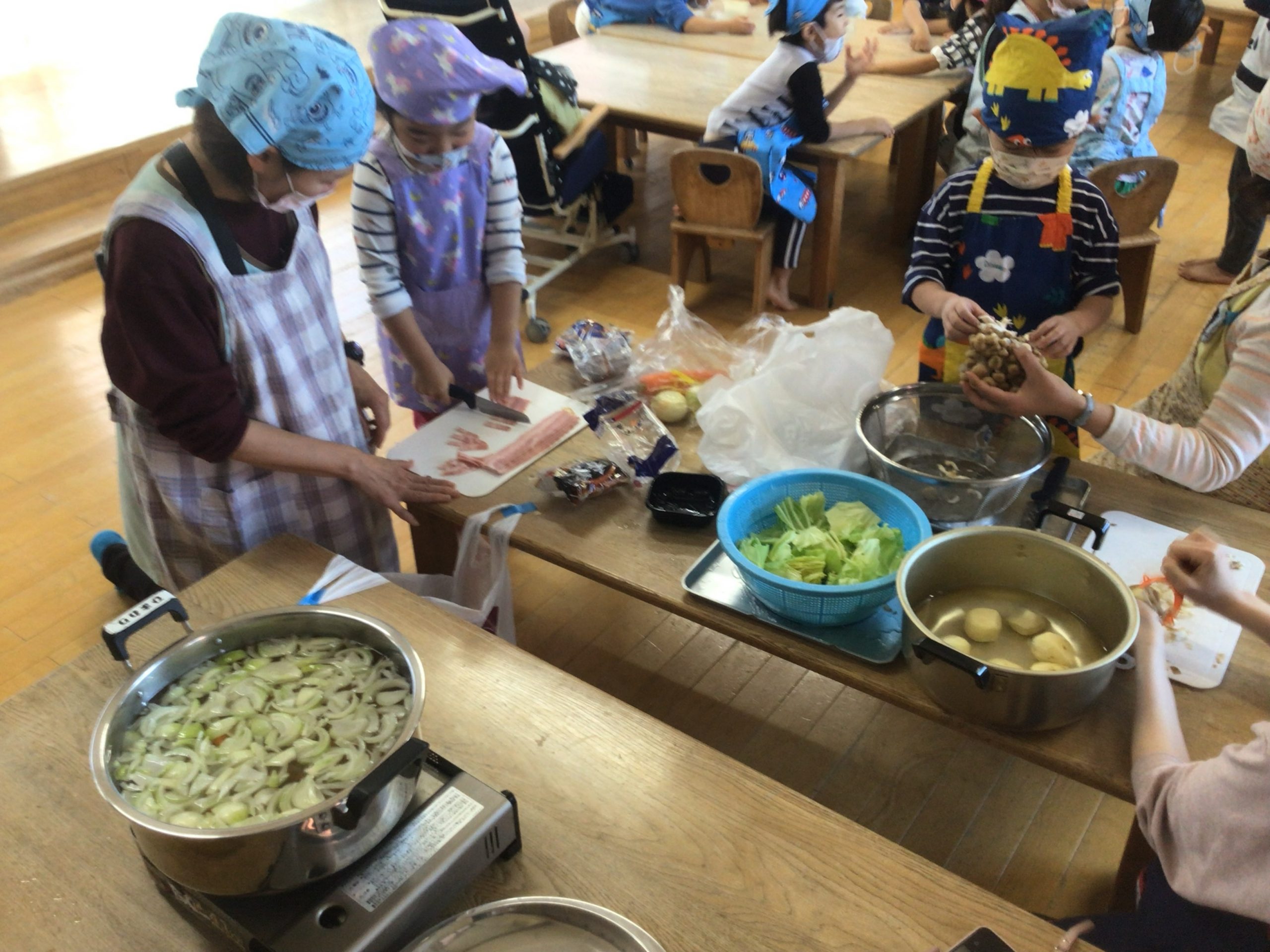 幼児クラスのばら組、ひまわり組、ゆり組が各クラスで考えたメニューを作りました。