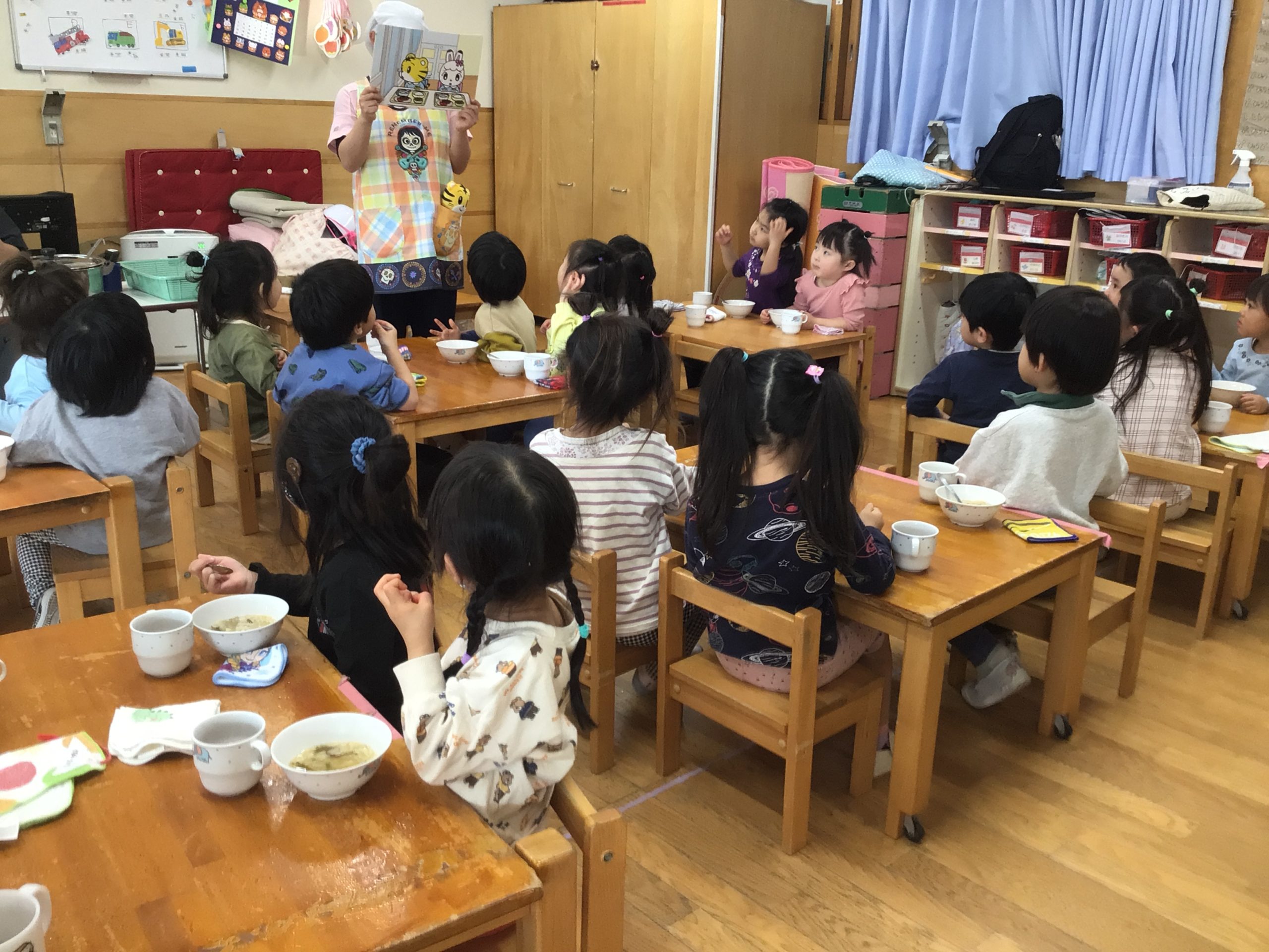 食材には、赤・黄色・緑がありそれぞれ体の為に役割があることを聞きました。子ども達が、