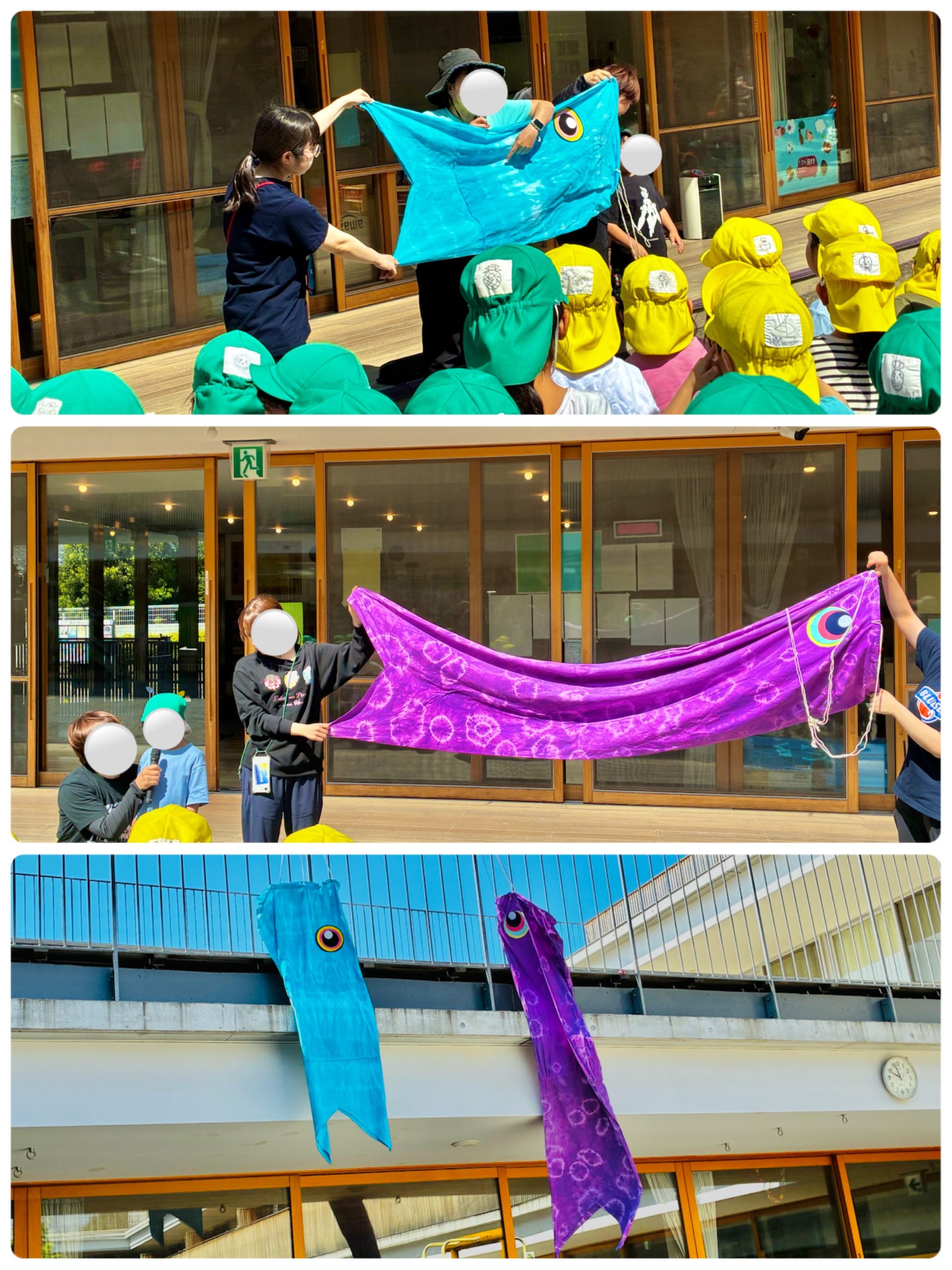 完成したこいのぼりを飾り、空高く泳ぐ様子を見ながら子どもたちもとても喜んでいました!