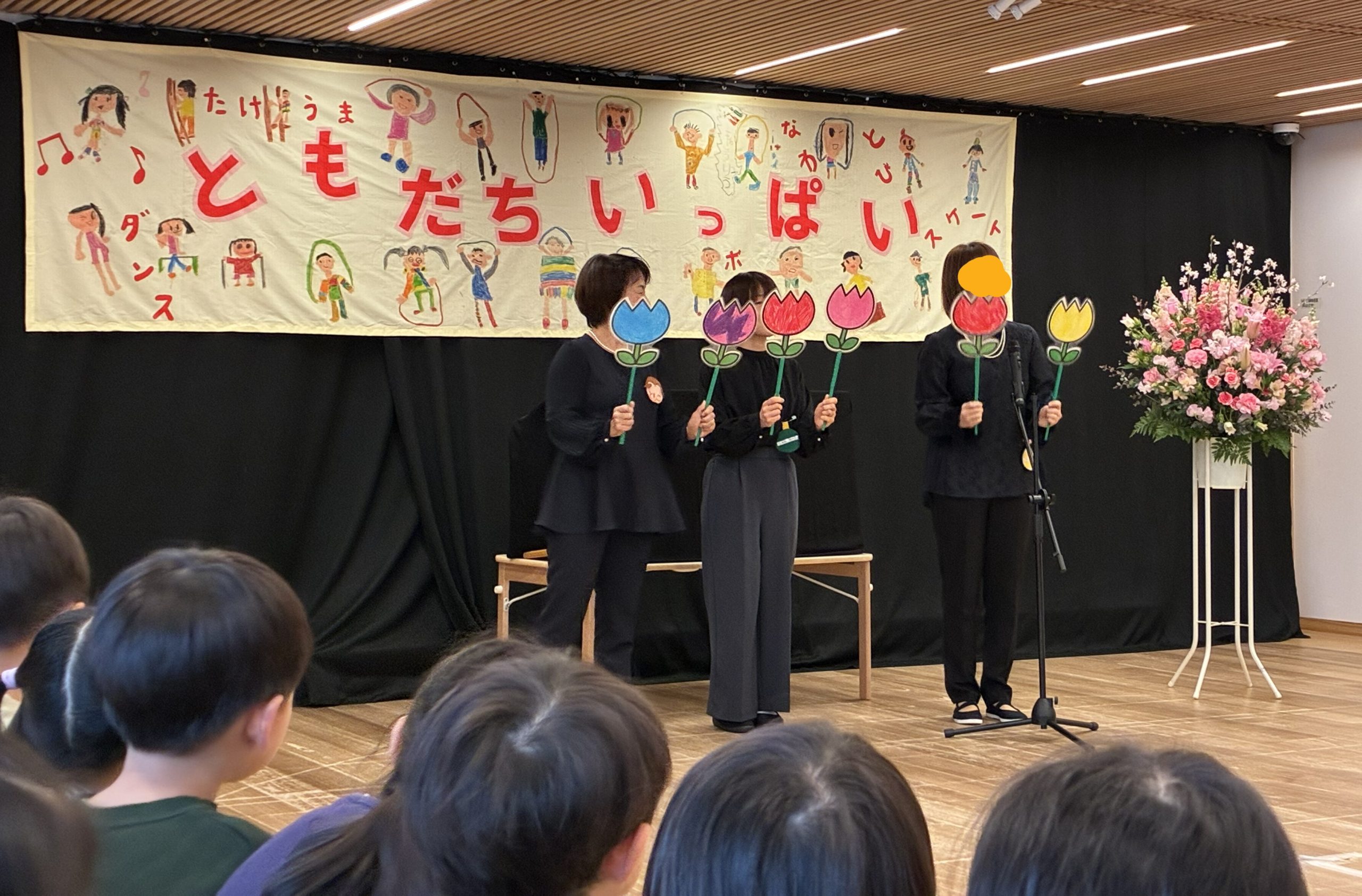 入園式ではペープサートを見たり、在園児が歌のプレゼントを送ったりしながら、一緒に新しいお友だちがやってくることを喜びましたよ♪