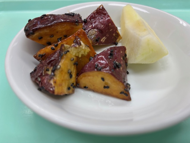 幼児クラスで提供している、みんな大好きな大学芋のレシピを紹介します。材料は、子供1人前の量なので、調味料が細かい数字になっていますので、ご家族の人数分で計算して作ってみてください。