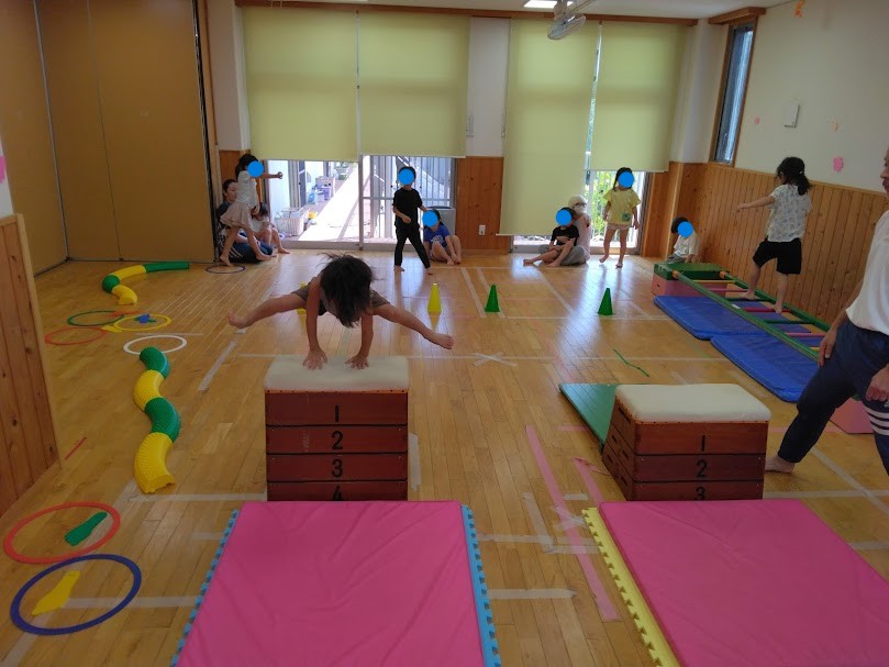 体操教室では雑巾がけリレーや跳び箱!色々な体の使い方を楽しんでいます☆