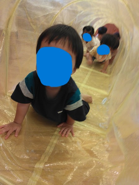 「ばあ!!」と笑顔で登場して保育者との関わりも楽しむ微笑ましい姿がたくさん見られました😊✨