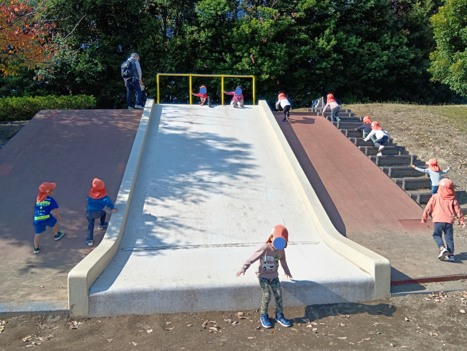 二子玉川公園ですべり台を楽しむすずめさん!(3歳児)