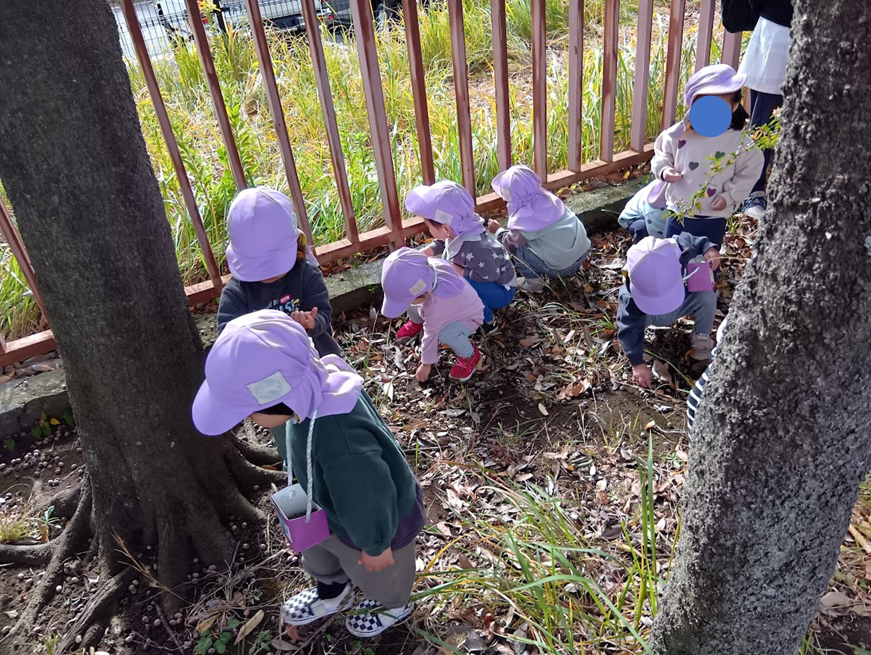 涼しく過ごしやすい秋にお散歩に出かけ、秋のものに触れたり、少し遠い距離も歩けるようになってきた子どもたちが、散歩先でいつもより長く遊んだり、保護者の方にご協力いただき、公園や保育園でお弁当を食べたりして楽しく無理なく過ごしました♪
