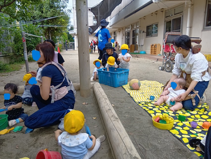 あんよのお友だちは砂場の中でひよこ組さんと一緒に遊んでみることもできました!