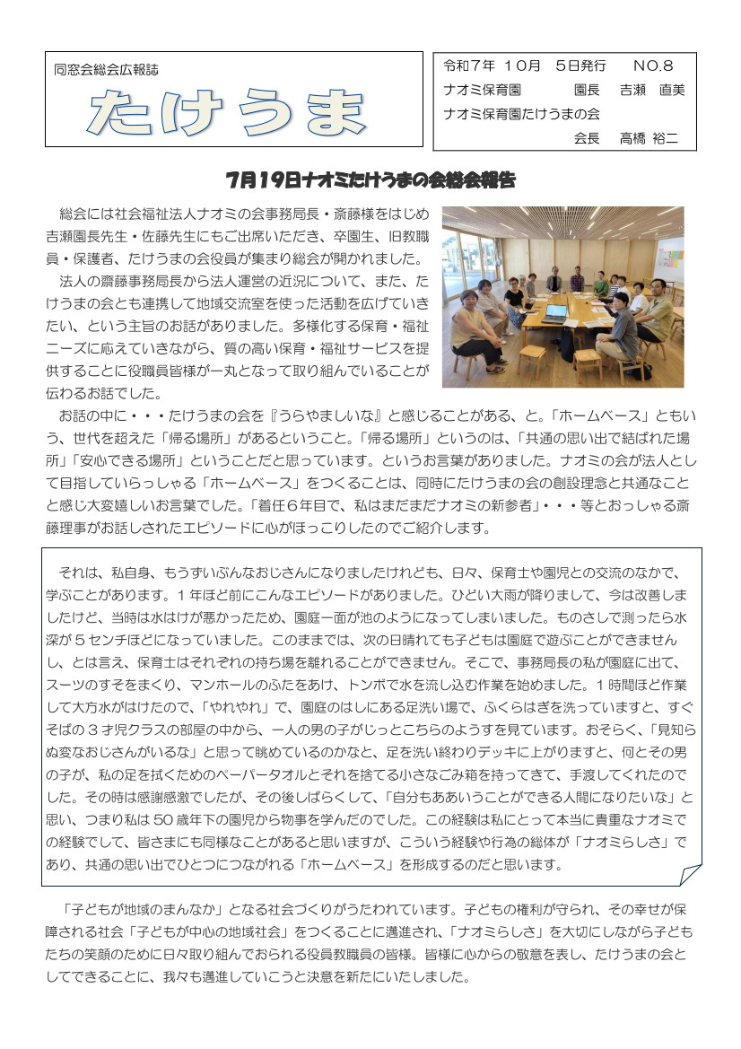 東京都世田谷区|ナオミ保育園 たけうまの会 情報配信サイト